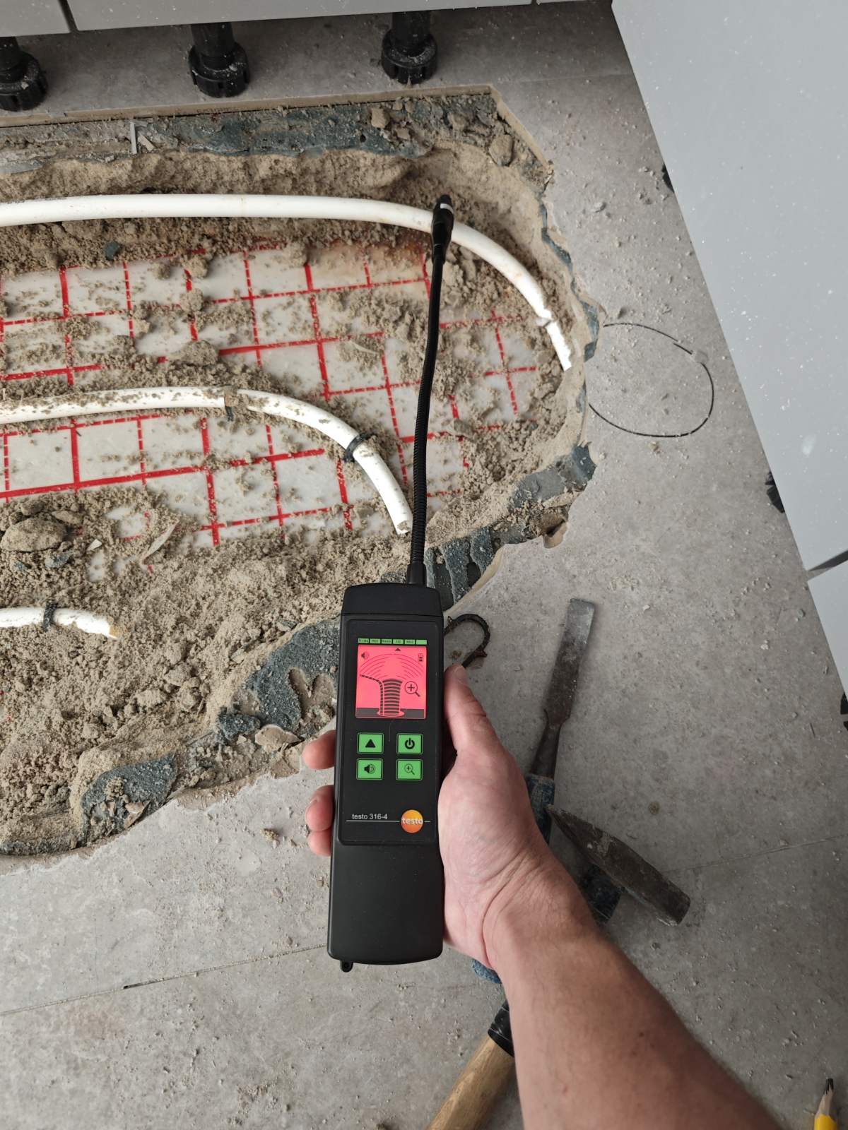 За допомогою спеціалізованого обладнання знайдено прихований витік в водяній теплій підлозі