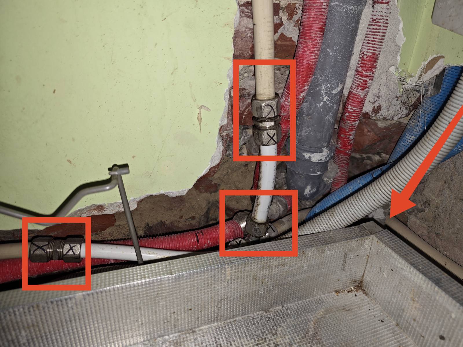 Причина протікання в декількох місцях. А саме протікають механічні фітинги та пресз'єднання