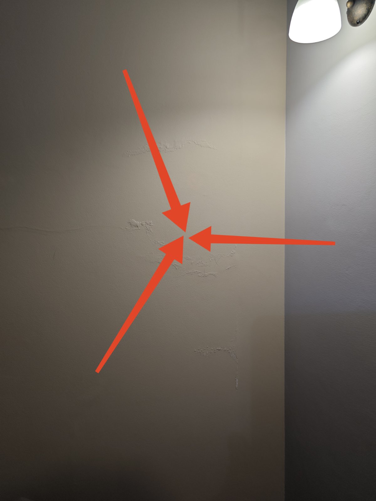 На першому поверсі в санвузлі господарі розбили стіну , в надії щось зрозуміти